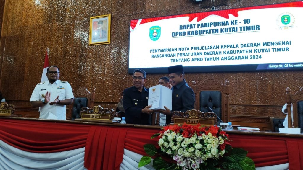 SANGATTA – Dewan Perwakilan Rakyat Daerah (DPRD) Kabupaten Kutai Timur (Kutim) menggelar Rapat Paripurna ke 10 dengan agenda Penyampaian Nota Penjelasan Kepala Daerah mengenai Rancangan Peraturan Daerah (Raperda) tentang Anggaran Pendapatan danBelanja Daerah (APBD) Tahun Anggaran 2024.