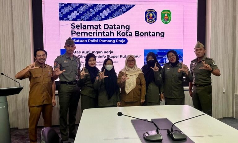 Sangatta – Upaya memperkuat kemampuan publikasi digital mendorong Satuan Polisi Pamong Praja (Satpol PP) Kota Bontang melakukan kunjungan kerja ke Diskominfo Staper Kutai Timur (Kutim) pada Senin (24/11/2025). Kegiatan yang berlangsung di Ruang Rapat Diskominfo tersebut menjadi ajang berbagi pengalaman mengenai strategi pengelolaan media sosial untuk kepentingan edukasi dan sosialisasi publik.