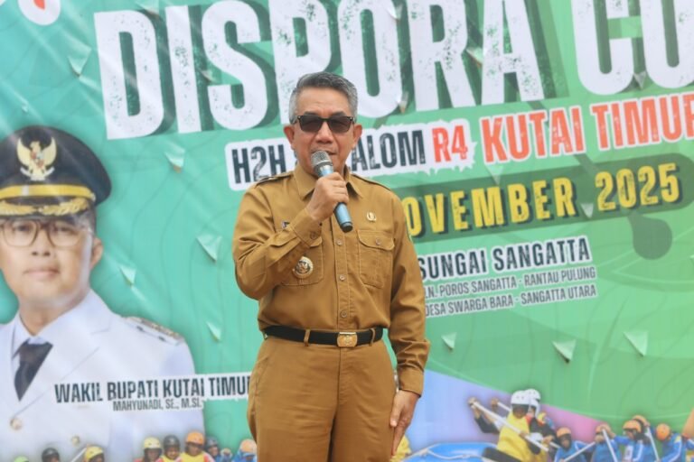 SANGATTA – Deru arus deras Sungai Poros Sangatta–Rantau Pulung (Km 20) kembali menjadi saksi ketangguhan para atlet arung jeram dari berbagai daerah di Kalimantan Timur. Turnamen Arung Jeram Open Tournament Dispora Cup Kutai Timur (Kutim) 2025 resmi digelar, Kamis (13/11/2025), dengan menghadirkan dua nomor lomba menantang, Head to Head (H2H) dan Slalom R4.